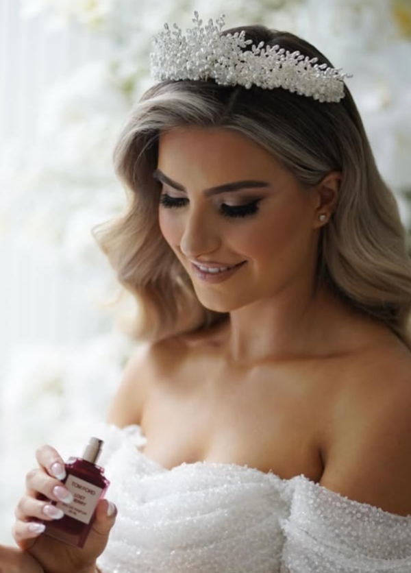 The Amanda tiara is beautifully crafted with clusters of pearls and clear beads concentrated along the base and rising above, delicate crystals crown the design.