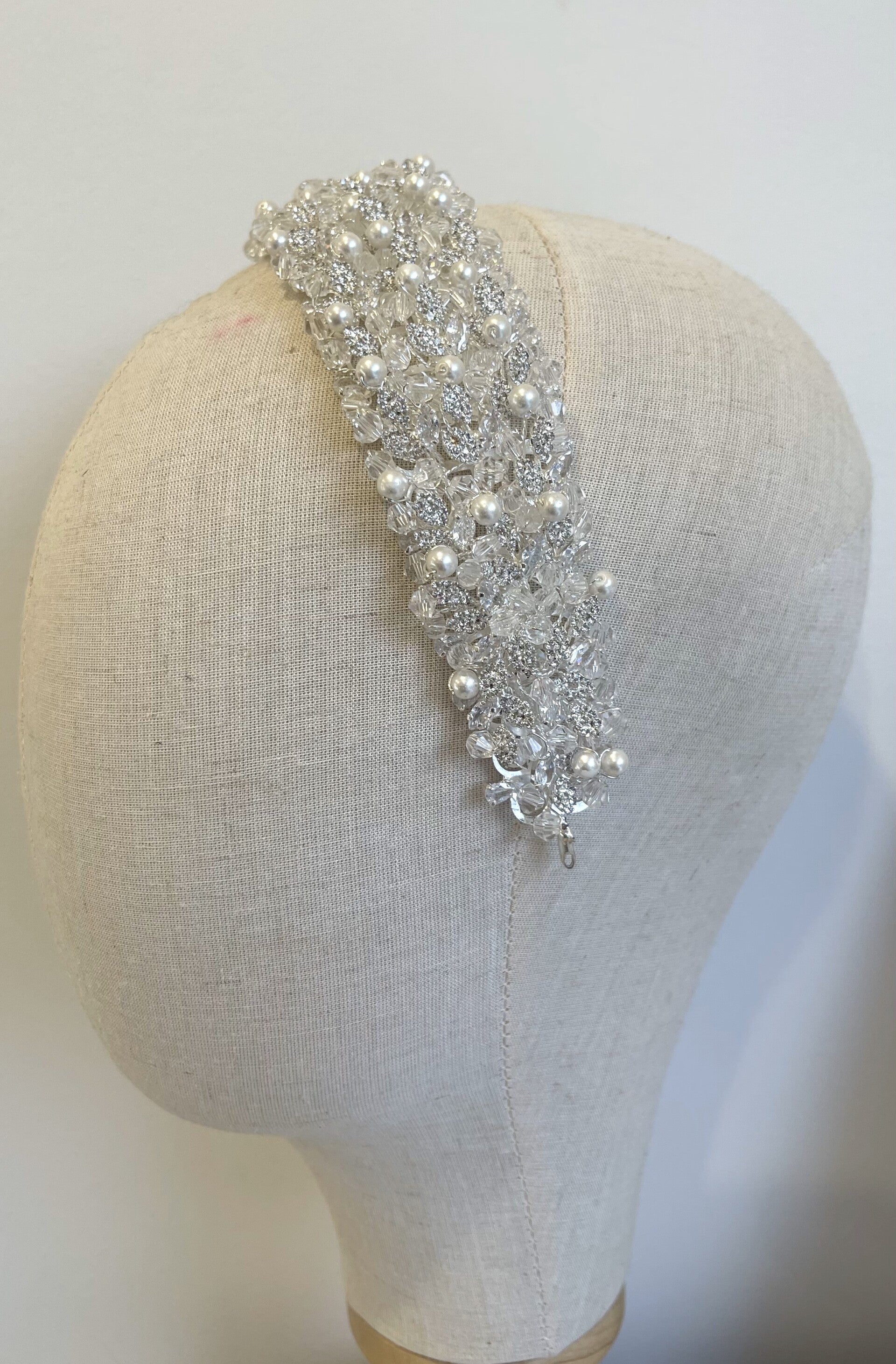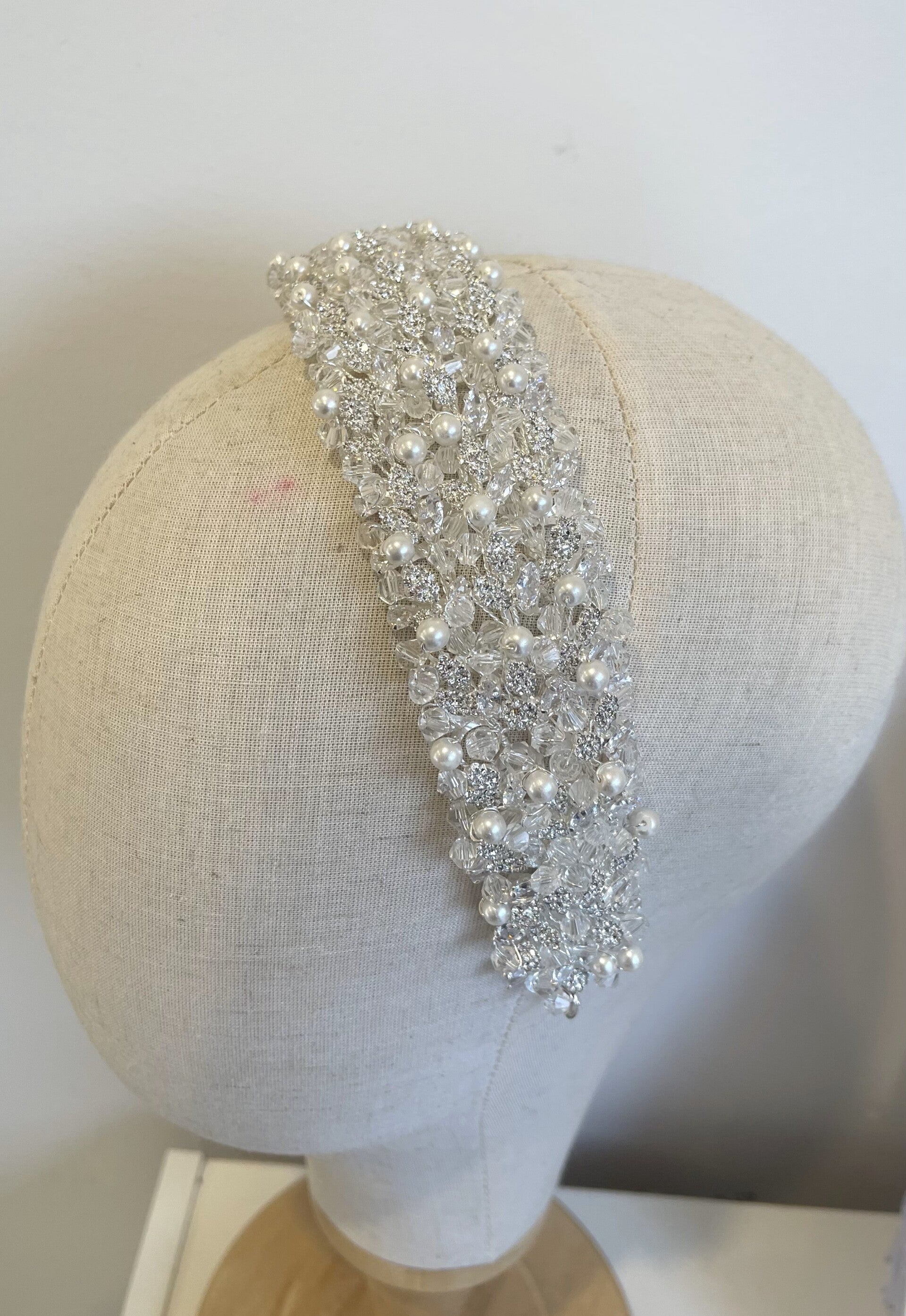 Add a touch of romance to your bridal look with this exquisite flexible headband adorned with crystals, beads, and pearls. Designed to seamlessly blend elegance and comfort. Perfect for both modern and classic wedding styles, this headband captures the light beautifully, adding a sparkling finish that complements your gown.