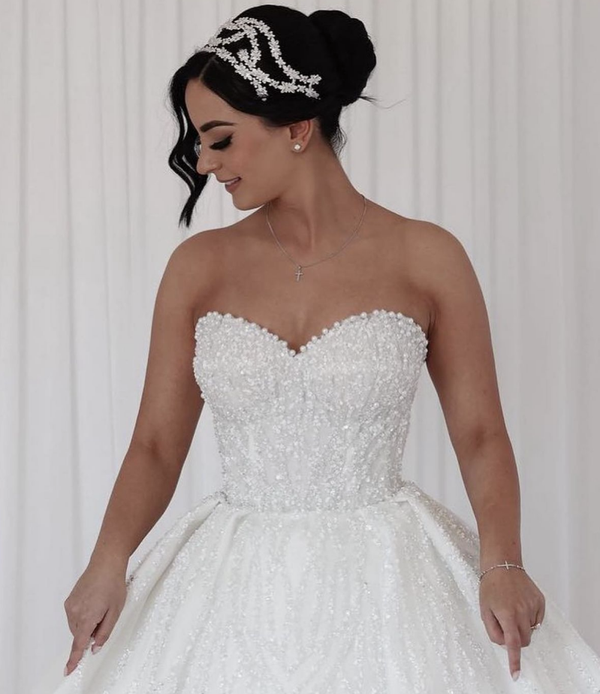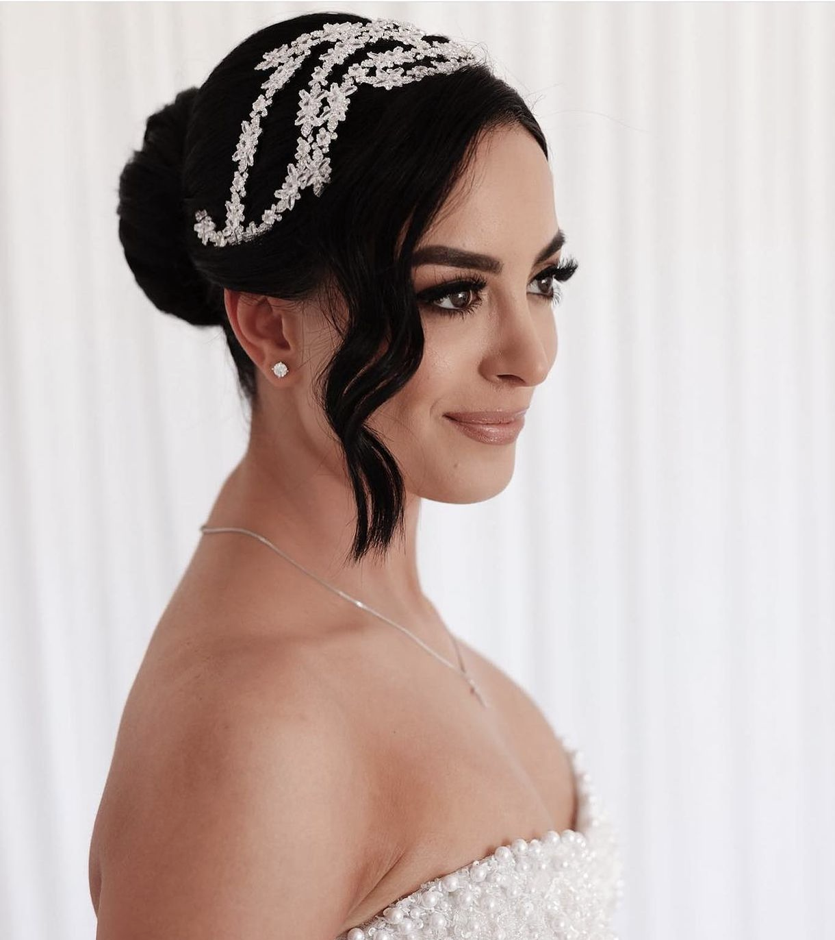 The airy, open structure of the piece creates a light-catching effect, adding a touch of glamour and sophistication. Perfect for a range of hairstyles, this accessory offers a romantic and timeless look, ideal for a bride on her special day.