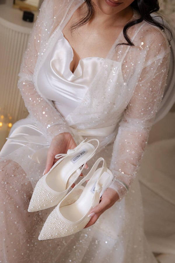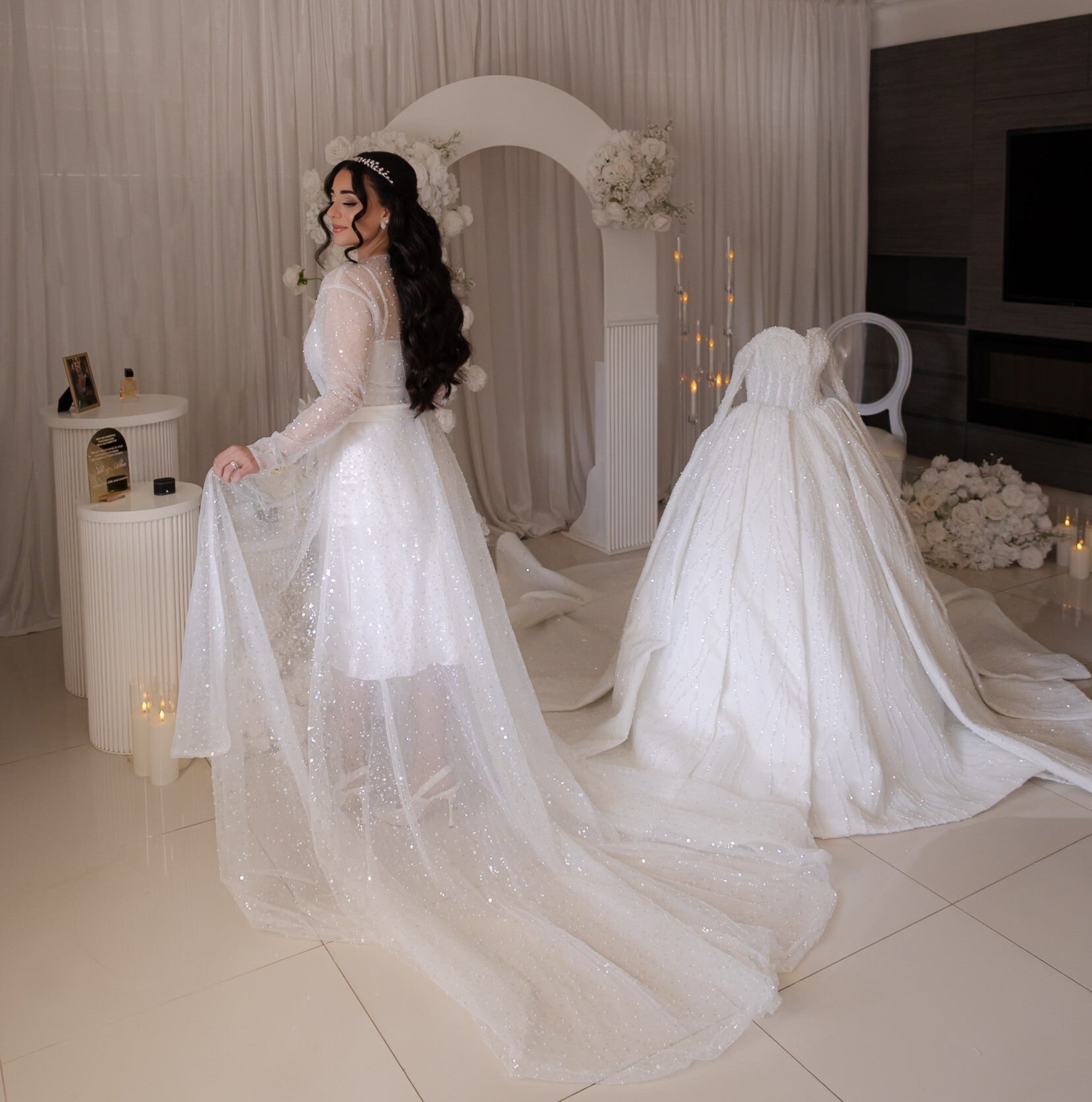 Our most luxurious robe Mariah is made with intricate detailing and full of mini pearls, sequin and clear beads to give the most extravagant and high shine! She is absolutely breathtaking in person and in photography.