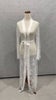 She is floor length and fitted and comes with a free v-neck satin slip.