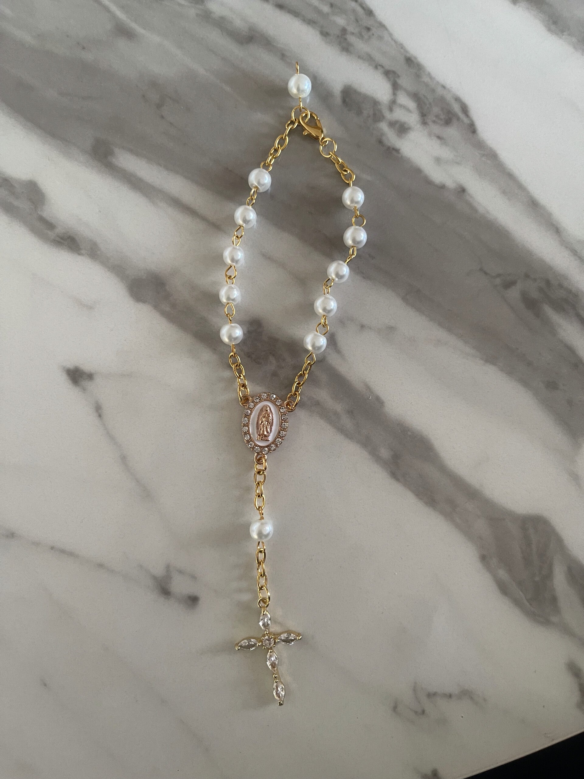 Perfect for brides seeking a meaningful accessory or a cherished gift for a loved one, this rosary bracelet is a timeless keepsake for your wedding day and beyond.