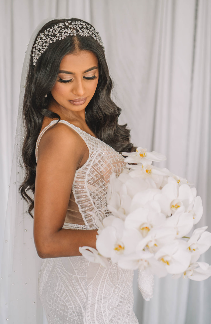 Its flexible structure allows it to be styled effortlessly along the side of the head, woven into an updo or placed as a statement accent.